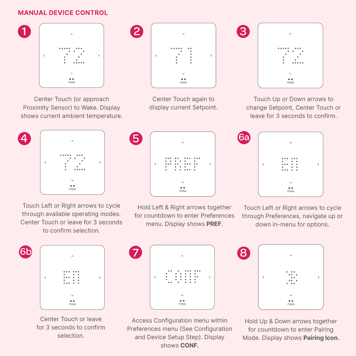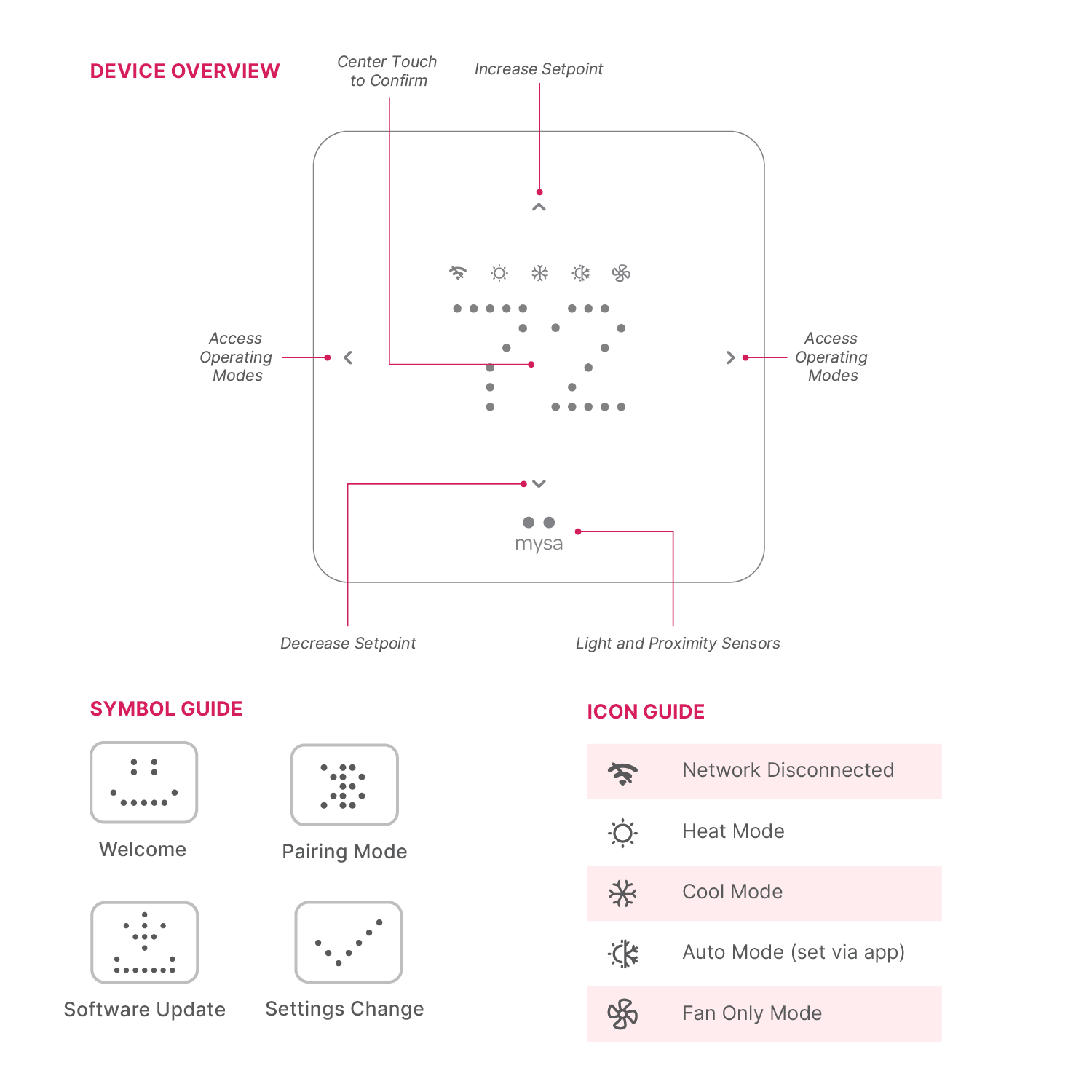 Your Mysa for Central HVAC gives you fast, precise control and clear status at a glance — whether you’re adjusting temperature from the thermostat display or checking system status in the Mysa app.